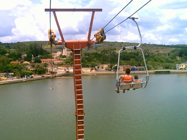 Não podemos esquecer do teleférico, que tem seus assentos movidos sobre as montanhas de Triunfo, passando sobre as águas do açude.