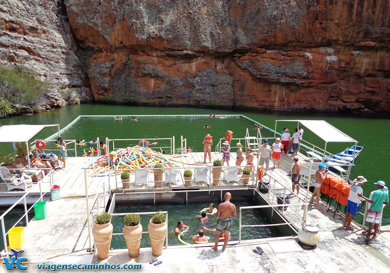 Durante a viagem, há uma parada de 40 minutos no Paraíso do Talhado, um trecho do cânion que se assemelha a uma enorme piscina, ideal para mergulhos e passeios de barco.