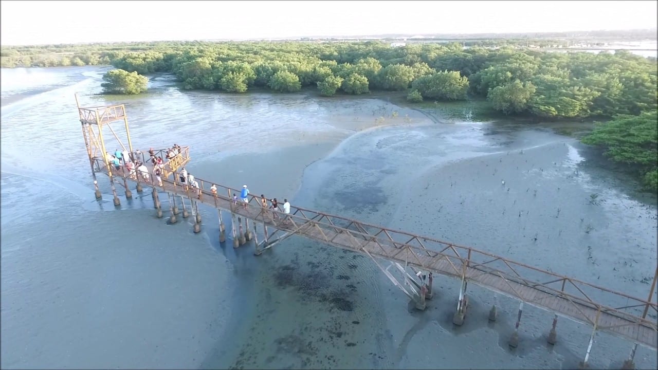 Ao final da passarela, os turistas encontram a Barra Grande, conhecida por uma característica única: na maré baixa, o mar pode recuar até três quilômetros, revelando um visual impressionante com falésias de um lado e manguezal do outro.
