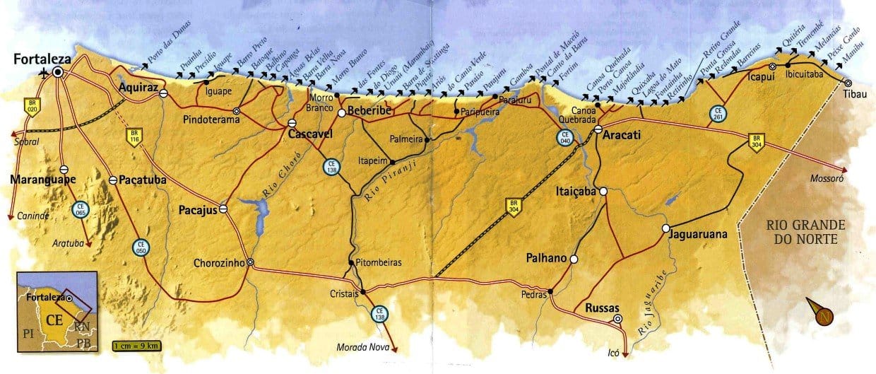 Veja o mapa do litoral leste do Ceará
