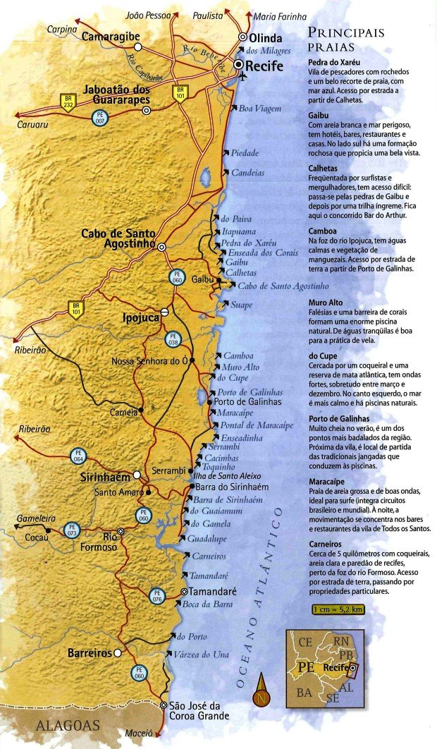 Veja o mapa do litoral sul de Pernambuco