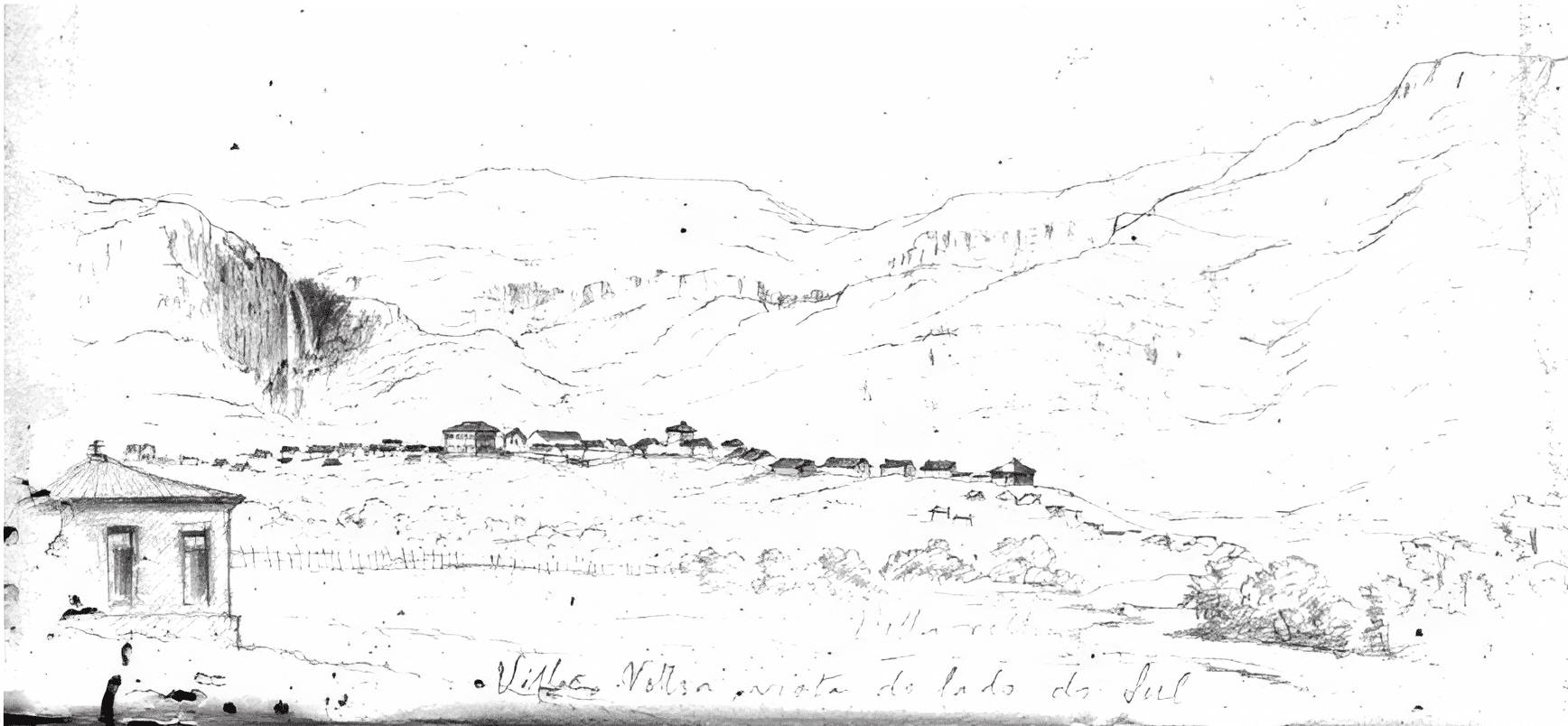 A Figura 10 revela a composição da paisagem, em que o cenário natural se mescla com as edificações construídas, permitindo visualizar o núcleo urbano da Villa Velha pelo ângulo do lado sul e como era o seu arranjo em 1879. Esse cenário passou por alterações ao longo do tempo, mas existem características de permanência, como a presença marcante da Cachoeira do Brumado e o seu conjunto de montanhas. Na atualidade, a estrada ecológica da BA-148 interliga os municípios de Rio de Contas – BA e Livramento de Nossa Senhora, que era o antigo vilarejo da Villa Velha, permitindo a vista da Cachoeira do Brumado.