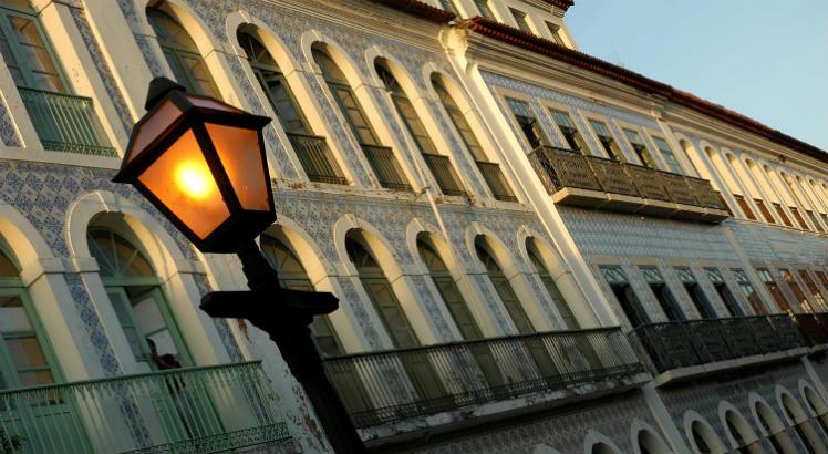 Azulejo Colonial de Fachada no Centro Histórico de São Luís do Marann”>