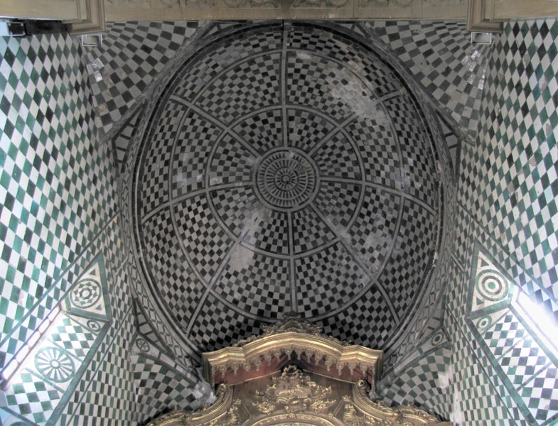 Entre finais do século XVI e inícios do XVII realizaram-se composições de enxaquetados, azulejos de cor lisa que, na sua alternância, iam criando malhas decorativas nas paredes.