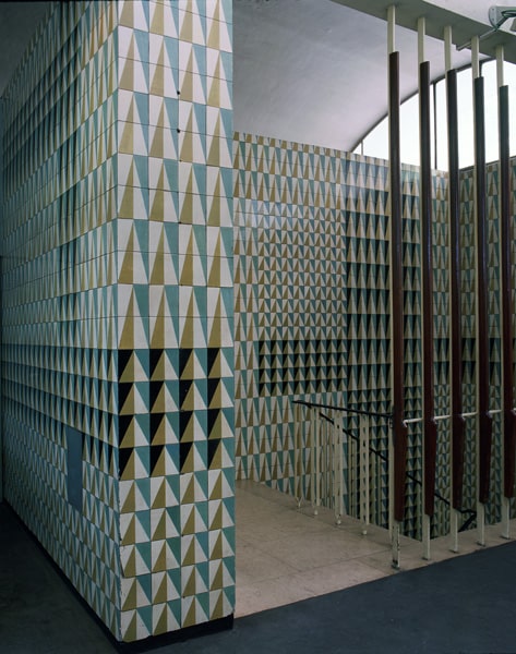 Azulejos de padrão, produzidos em grande quantidade e de fácil aplicação, vieram então a ser utilizados primeiro em módulos de repetição com 232 azulejos, depois em módulos maiores que atingiram 12312 azulejos, geradores de fortes ritmos em diagonal.