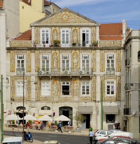 Revestimento total de fachadas, conferindo aos edifícios cor e brilho, e alterando, assim, a imagem urbana. Recurso a azulejos de padrão fabricados em diversas unidades industriais. Houve ainda fachadas de cariz figurativo, destinadas a espaços específicos, como as de Luís Ferreira, conhecido como Ferreira das Tabuletas (1807-?).