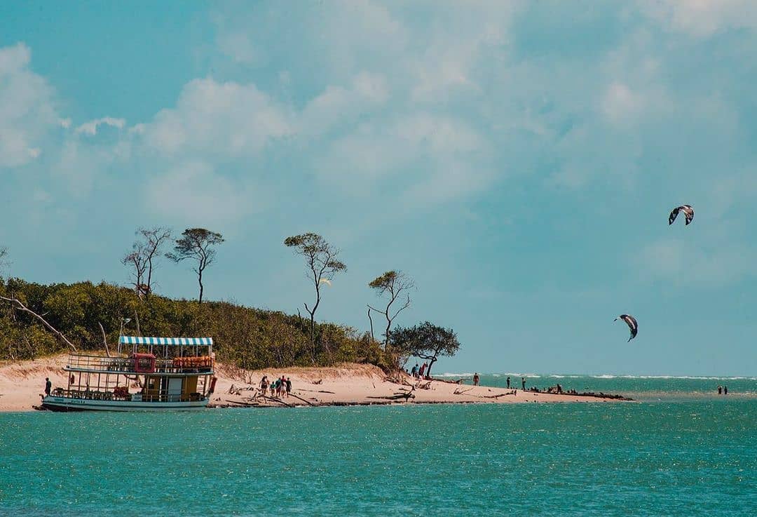 O encontro do rio com o mar é um dos grandes destaques nas viagens ao litoral do Ceará. Os turistas têm a oportunidade de experimentar a mistura de água doce e salgada no Rio Jaguaribe durante os passeios de barco.