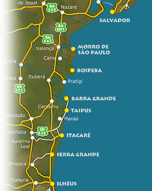 Conhecido por sua tranquilidade e belezas naturais, o local se destaca na estrada parque BA-001, que atravessa a exuberante Mata Atlântica.