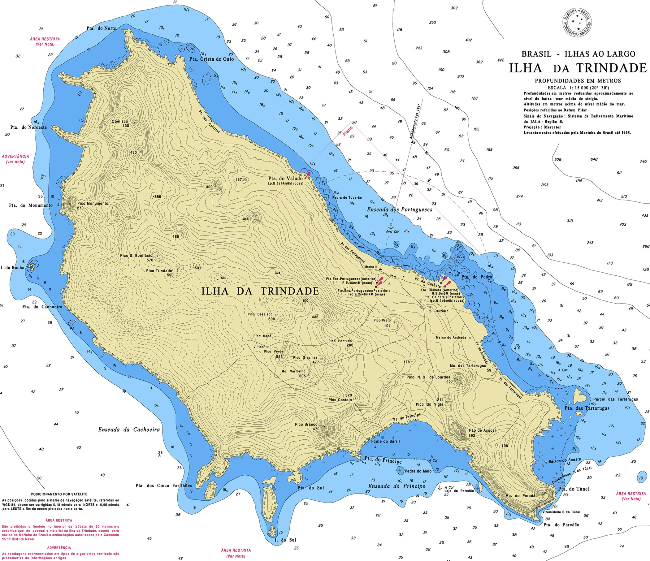 As ilhas Trindade e Martim Vaz são consideradas pelos navegadores como um imenso paredão no meio do Atlântico e são desabitadas, exceto por uma guarnição de 32 militares da Marinha Brasileira na Ilha da Trindade.